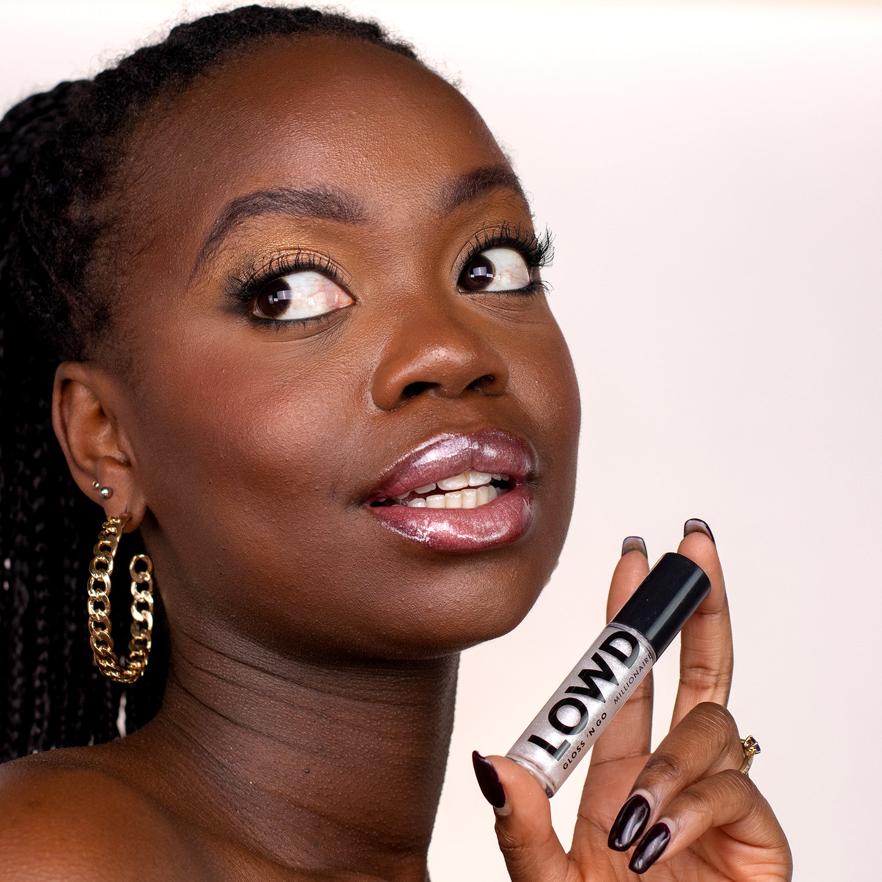 Our shimmer bundle contains our two glosses with pearl pigments for a shimmering finish. WHO, ME? is a light pink shade, and MILLIONAIRE is a light, transparent gloss.